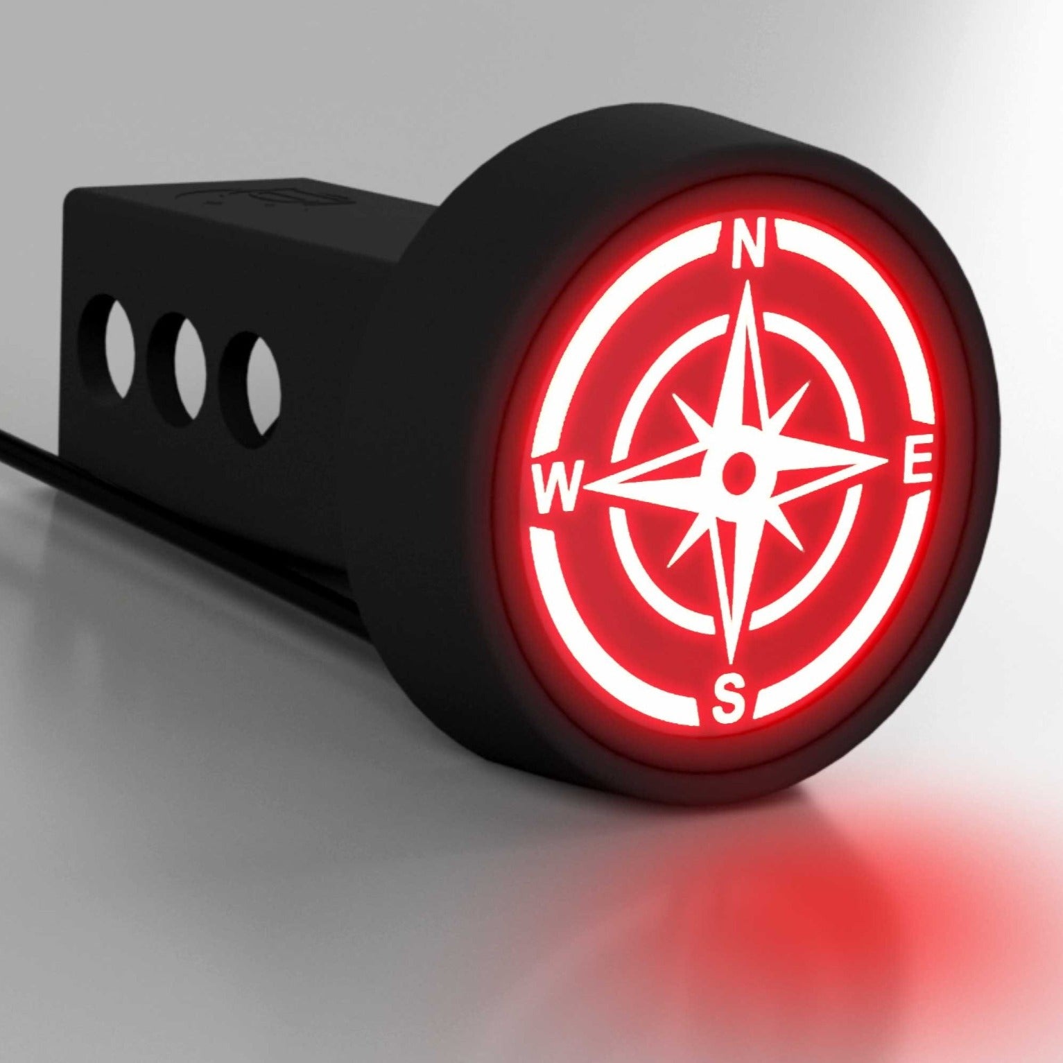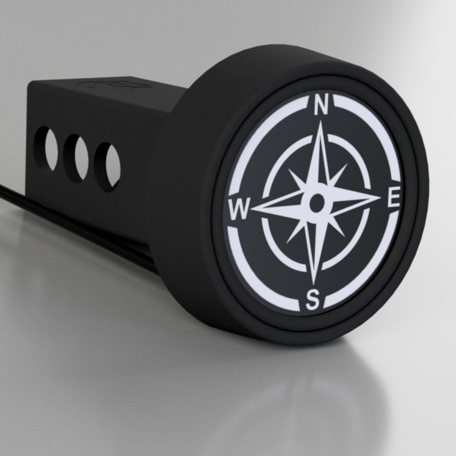 This hitch cover brings the adventurous spirit of nautical exploration to your vehicle, featuring a compass design that's illuminated by a brake-activated LED light, enhancing both safety and visibility during your travels. The intricate compass rose points to the cardinal directions, serving as a reminder of the endless possibilities that lie ahead and the paths yet to be explored.