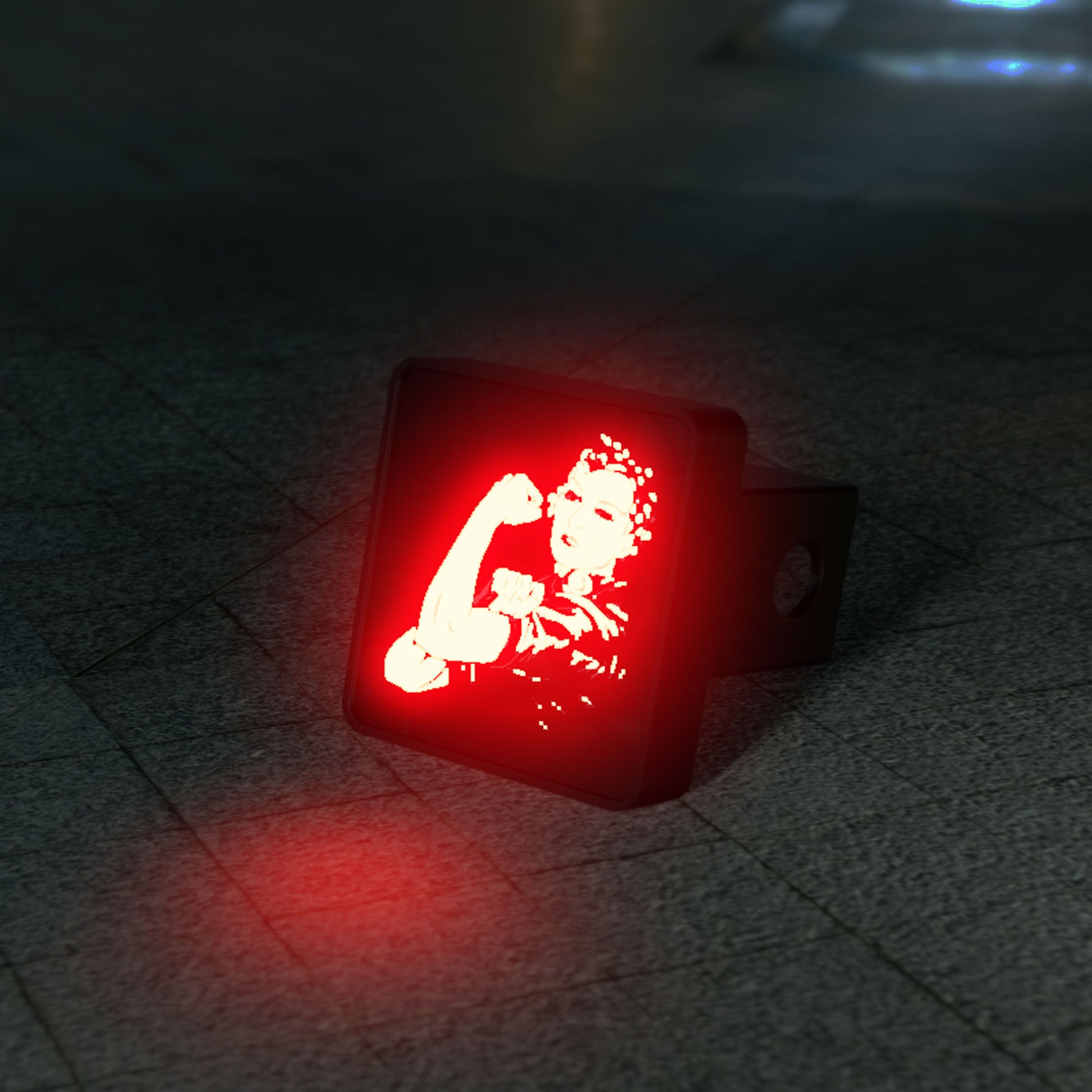 Crafted for easy installation on any standard 2-inch hitch receiver, this durable hitch cover is an ideal accessory for history enthusiasts, advocates of empowerment, and anyone inspired by the enduring "We Can Do It!" mantra. Whether you're on a daily commute or a long road trip, this LED hitch cover adds a touch of inspiration to your journey, making it more than just a practical safety feature—it's a statement of solidarity and strength.